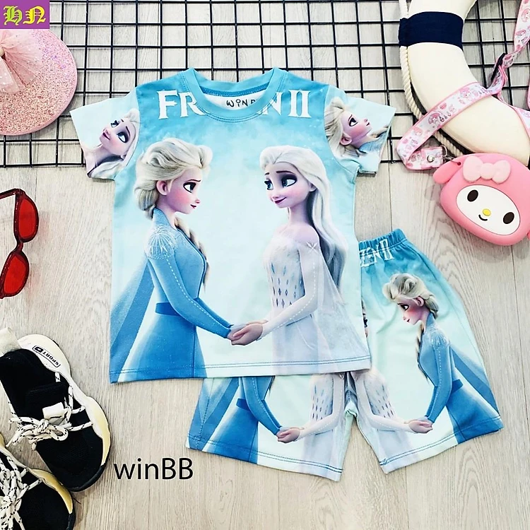 Đồ bộ bé gái hình Elsa & Anna - Đồ bộ mặt nhà từ 9-47kg - Vải thun lạnh - Giặt không vỡ hình - Hương Nhiên