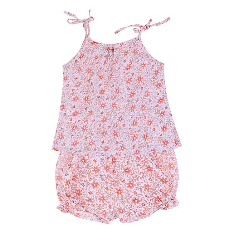 - Đồ Bộ Bé Gái Họa Tiết Hoa Nhí Nanio F0549 - Hồng với thiết kế họa tiết hoa nhí và kiểu áo 2 dây cột mát mẻ kết hợp quần bầu lửng thời trang, bộ đồ sẽ làm cho bé trông dễ thương và nữ tính hơn khi mặc.