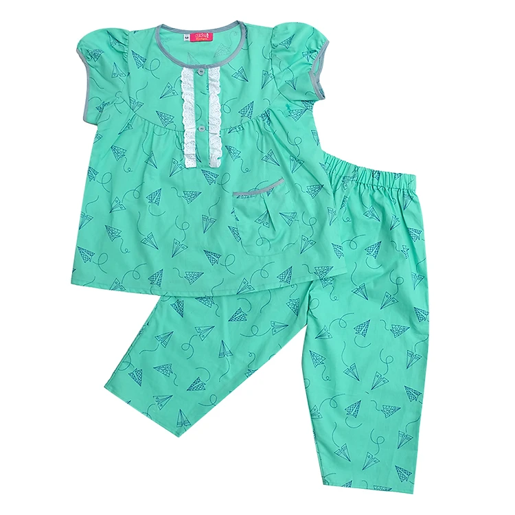 - Đồ Bộ Bé Gái In Máy Bay Nền Xanh Ngọc CucKeo Kids được may từ chất liệu cotton thoáng mát, sợi vải mềm mại, an toàn với làn da nhạy cảm của bé.