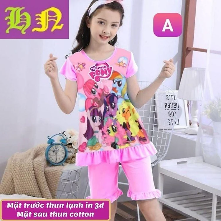 Đồ bộ bé gái lửng tà xòe hình Pony từ 10-42kg - thun cotton - Giặt không vỡ hình- Hương Nhiên