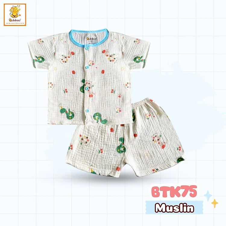 Đô bộ bé trai Babiboo bộ quần áo cho bé tay ngắn chất muslin thông thoáng, mềm mại BTK75