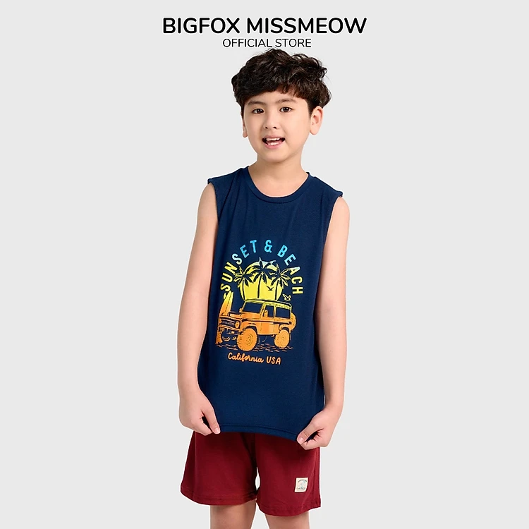 Đồ Bộ Bé Trai BIGFOX - MISS MEOW, Bộ Ba Lỗ Cho Bé Mùa Hè Chất Cotton Mềm Mịn In Khủng Long 3,4,5,6,7,8,9,10,11 Tuổi