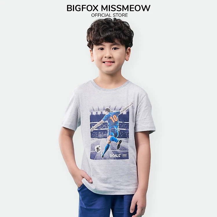 Đồ bộ bé trai cộc tay BIGFOX - MISS MEOW size đại chất cotton phong cách Âu Mỹ in bóng đá Goals 11 - 40 kg QATE 01