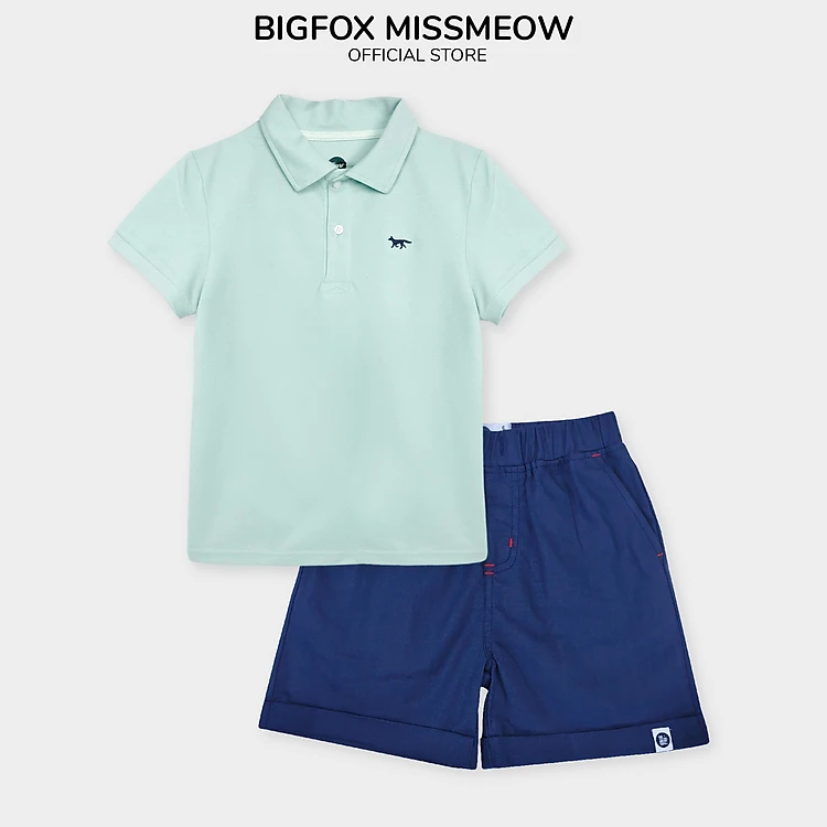 Đồ bộ bé trai Polo cộc tay cổ bẻ Bigfox Miss Meow size đại chất liệu cá sấu cotton cỡ trẻ em 7-15 tuổi 30kg 40kg