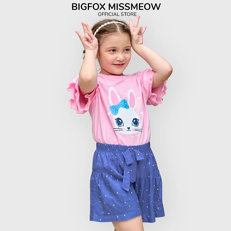 Đồ bộ cộc tay bé gái Bigfox Miss Meow size đại mùa hè vải cotton mềm mại in thỏ dễ thương cỡ 3-11 tuổi 30kg 40kg