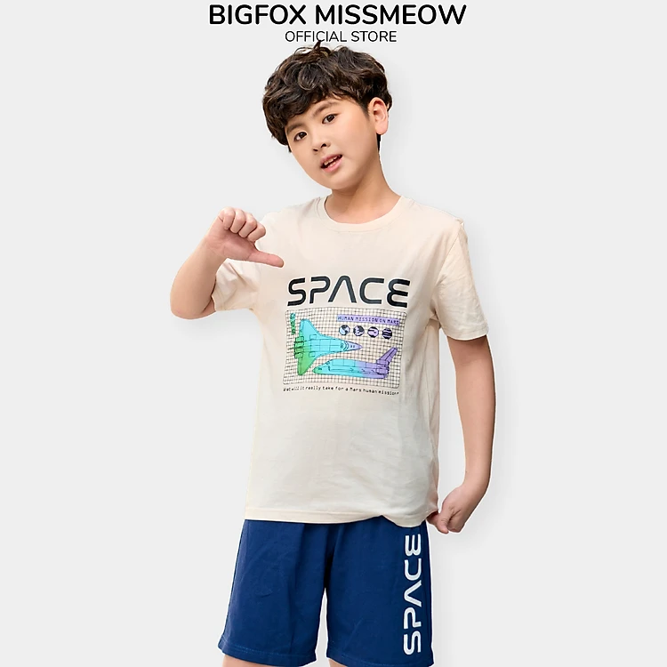 Đồ bộ cộc tay Hàn Quốc Bigfox Miss Meow cho bé trai size đại vải cotton mềm mại in Space cỡ 12-15 tuổi 40kg 50kg