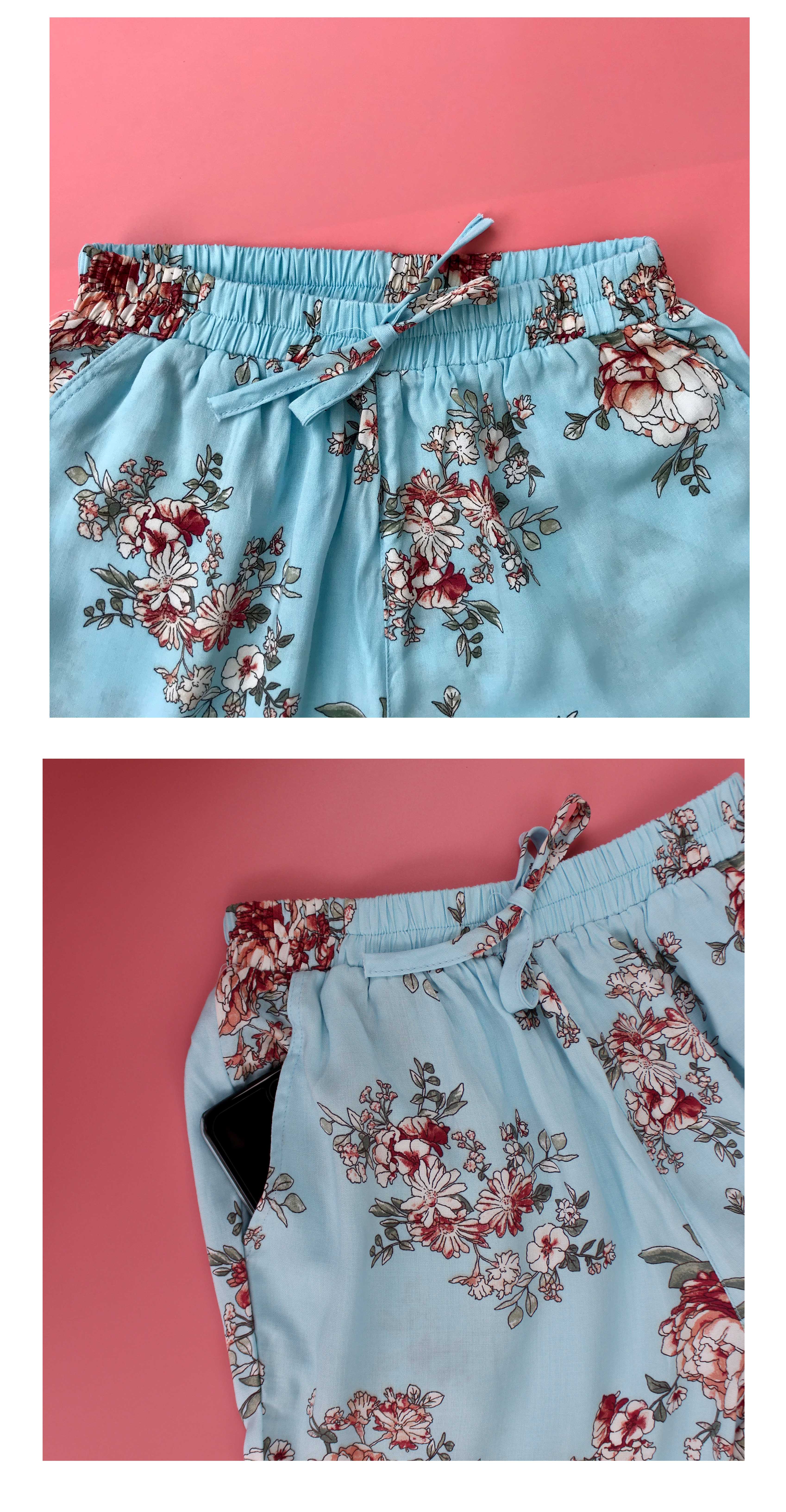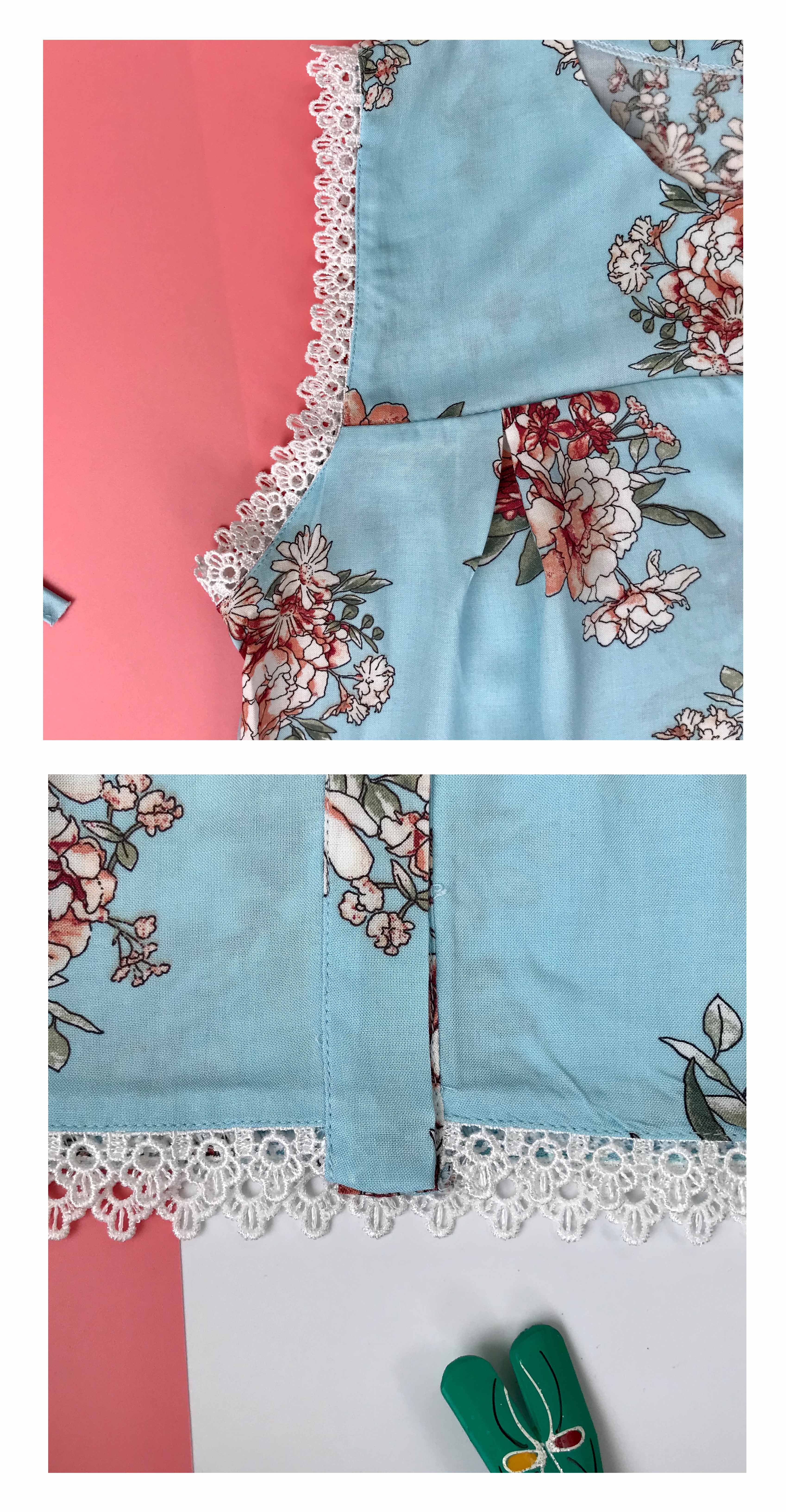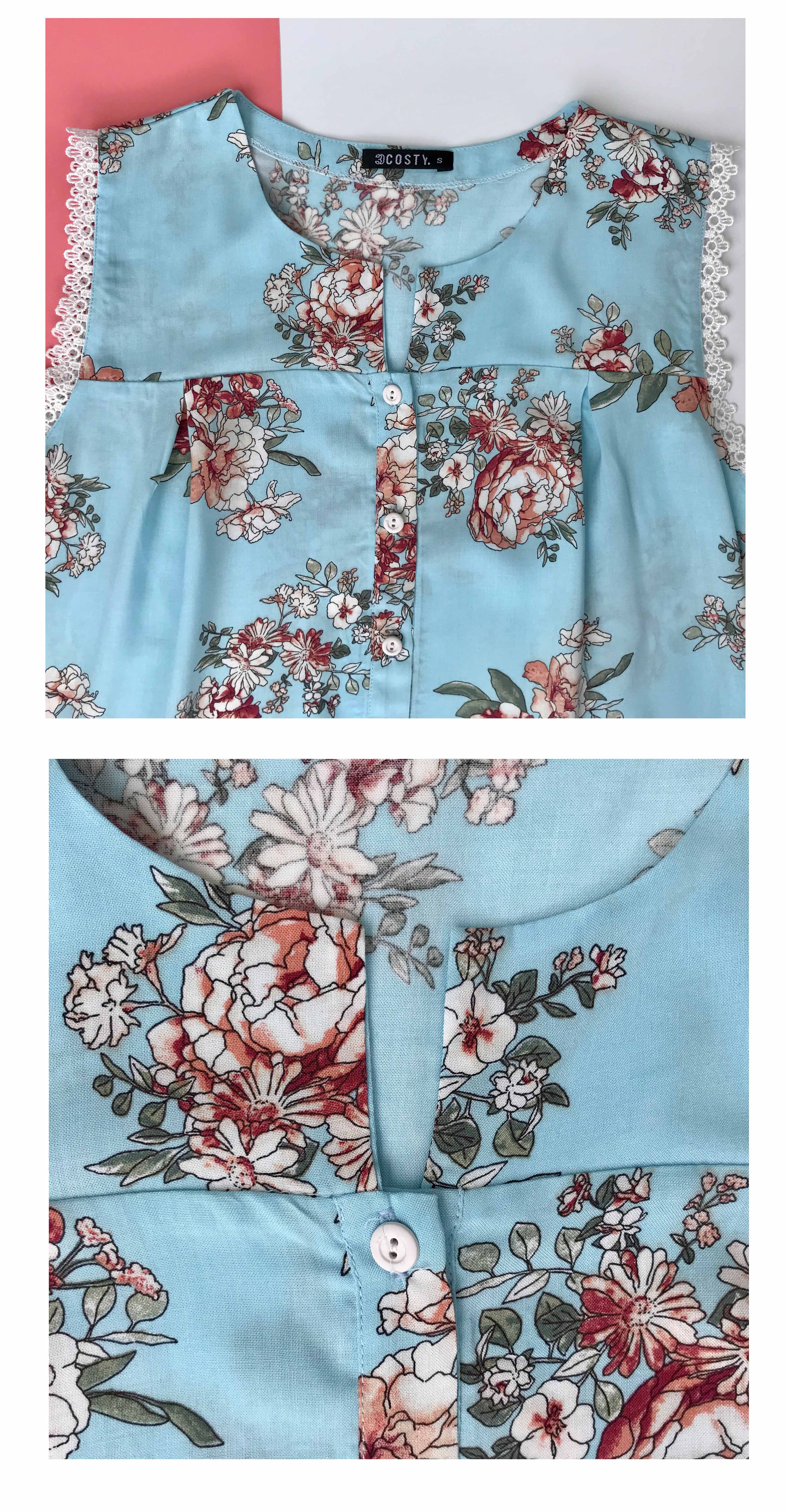 - Áo tay ngắn – cổ tròn mặc thoải mái, mát mẻ, phối ren tạo điểm nhấn