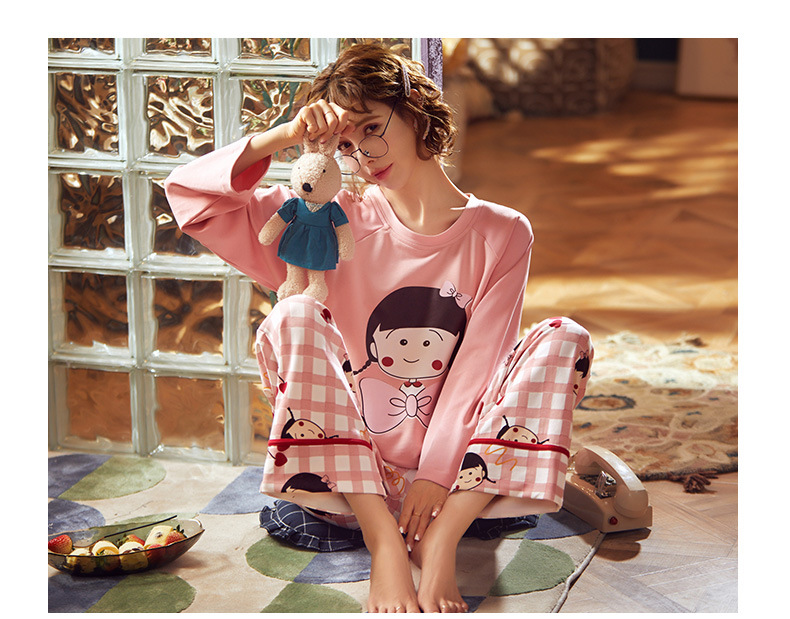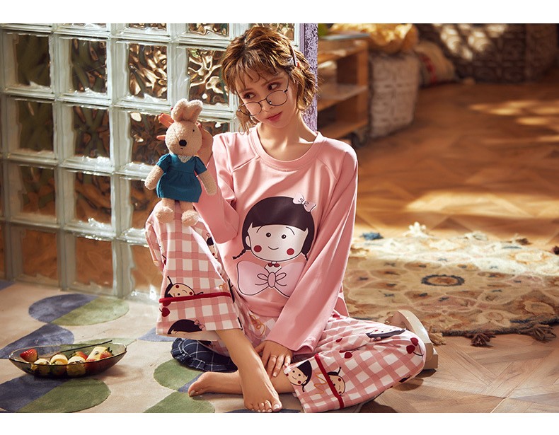 Đồ bộ mặc nhà chất cotton tay dài quần dài thu đông dành cho nữ 20164