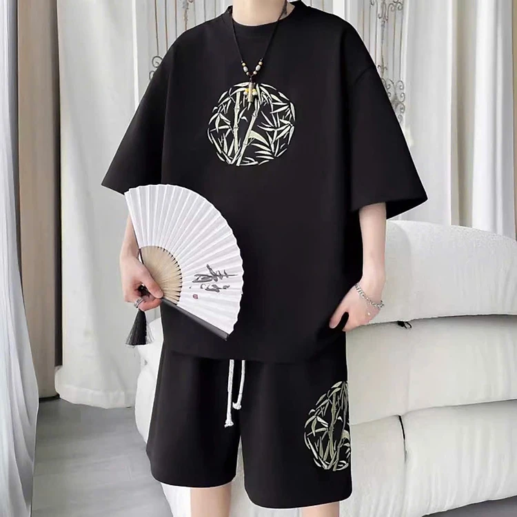 Đồ bộ mặc nhà in cành tre, chất thun da cá co giản dày, mịn, thoáng mát, tay lỡ. freesize dưới 60kg-75kg