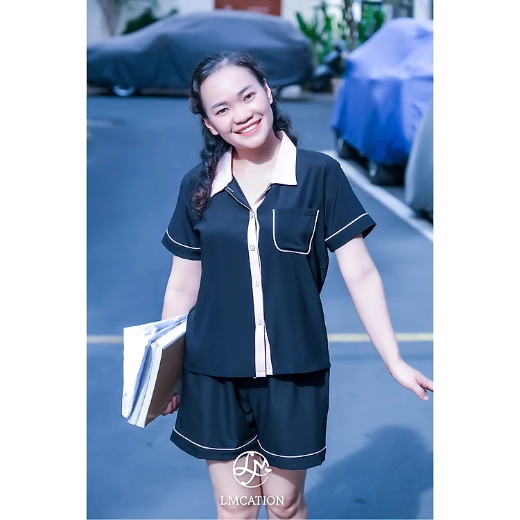 Đồ Bộ Mặc Nhà LMcation - Áo pijama & Quần đùi pijama Alia - Màu đen