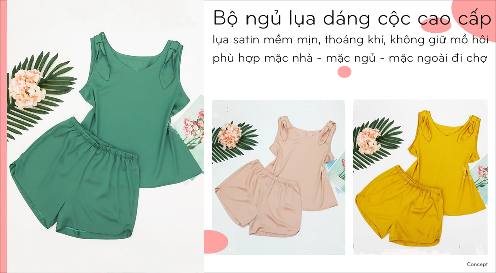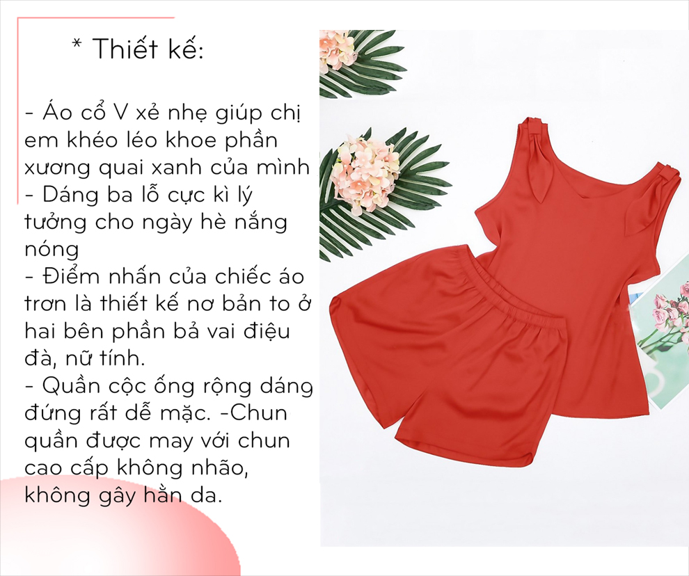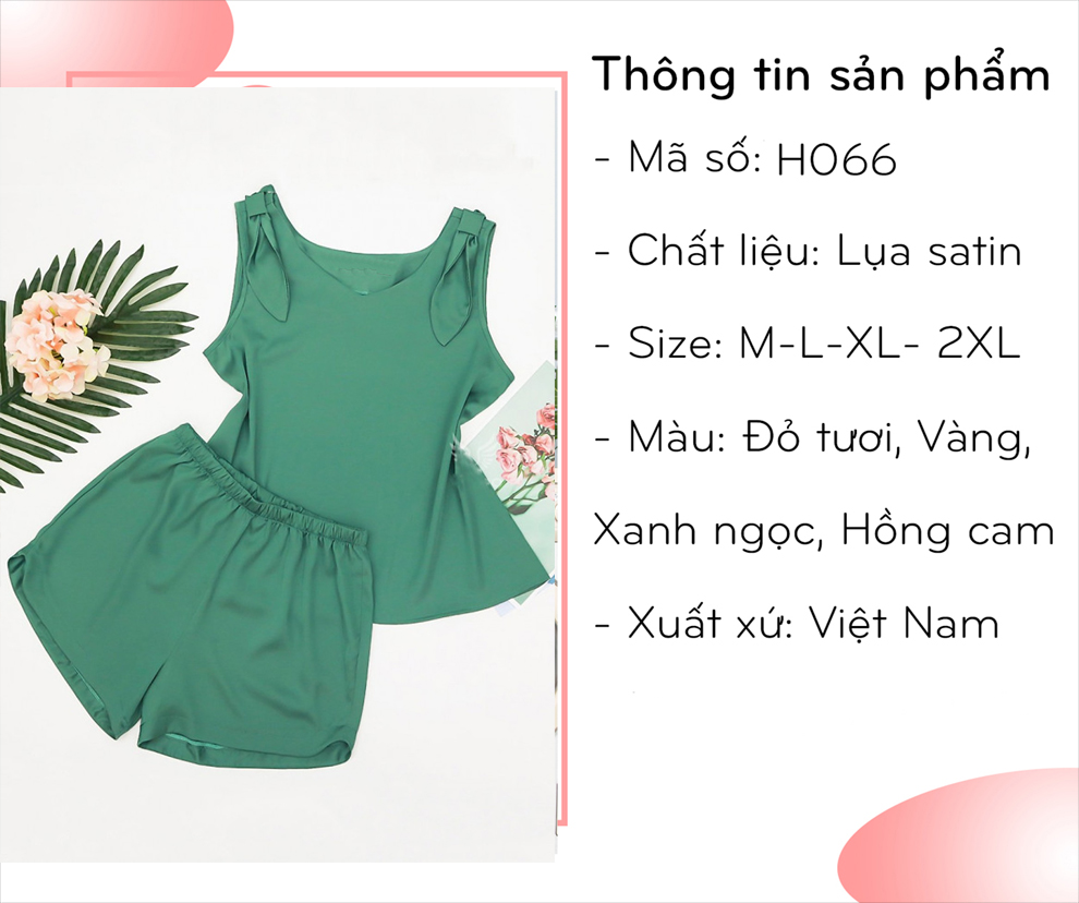Đồ bộ mặc nhà lụa trơn ba lỗ nơ hai bên H066
