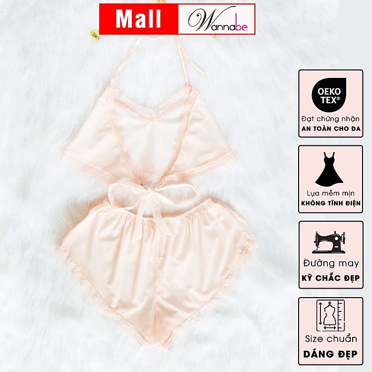 Đồ bộ mặc nhà sexy wannabe, bộ short bsc04 kiểu dáng áo yếm quần tim gợi cảm quyến rũ