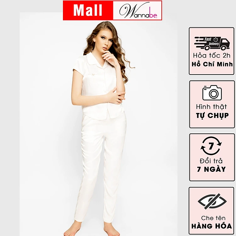 Đồ bộ mặc nhà Wannabe BD30P Pijama nữ quần dài viền lại đơn giản trẻ trung khi ở nhà cũng như tiếp khách