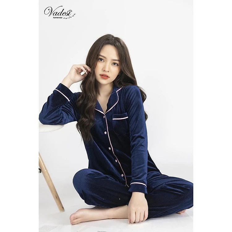Đồ Bộ Ngủ Pijama Nữ Dài Tay Nhung Tăm Cao Cấp Mùa Đông Mặc Nhà Sau Sinh Đẹp Mềm Mại, Khả Năng Giữ Nhiệt Tốt - VADESI