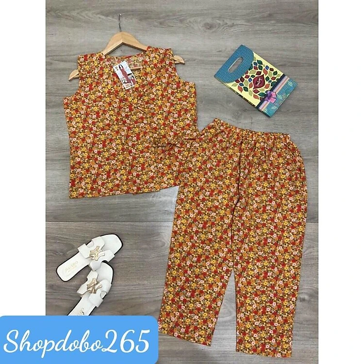 Đồ bộ nữ,đồ ngủ mặc nhà lửng 9 tấc sát nách vải lụa BL 121 họa tiết hoa nhí size 47-60kg.