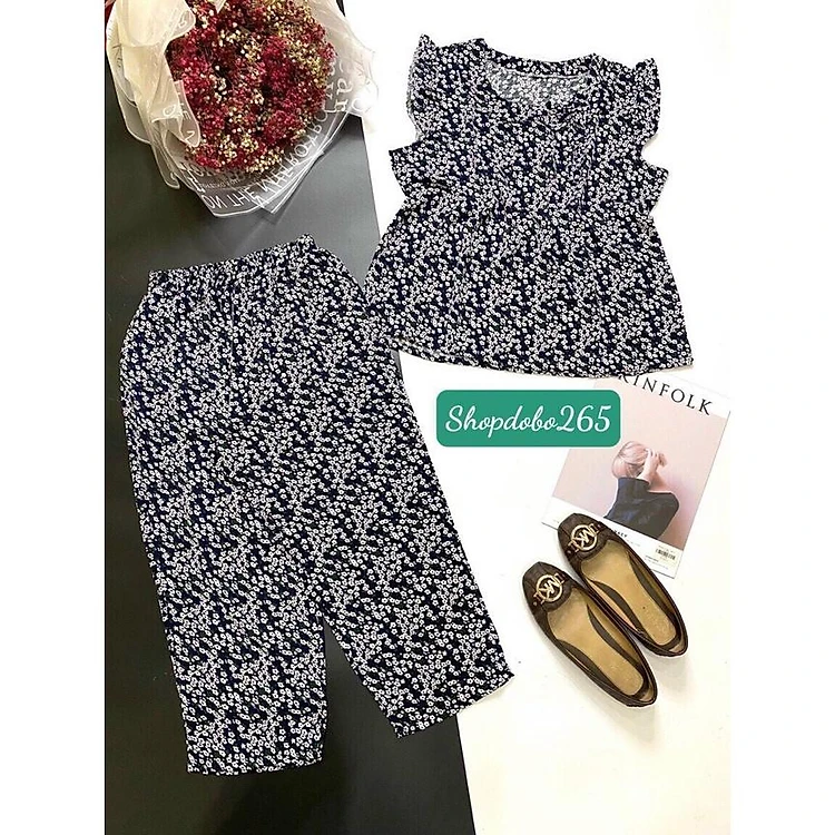 Đồ bộ nữ,đồ ngủ mặc nhà lửng 9 tấc vải lụa mango cao cấp họa tiêt hoa nhí siêu cưng size đại 58-67kg.