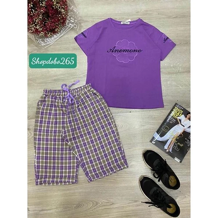 Đồ bộ nữ,đồ ngủ mặc nhà lửng áo vải thun cotton phối quần kaki thời trang.