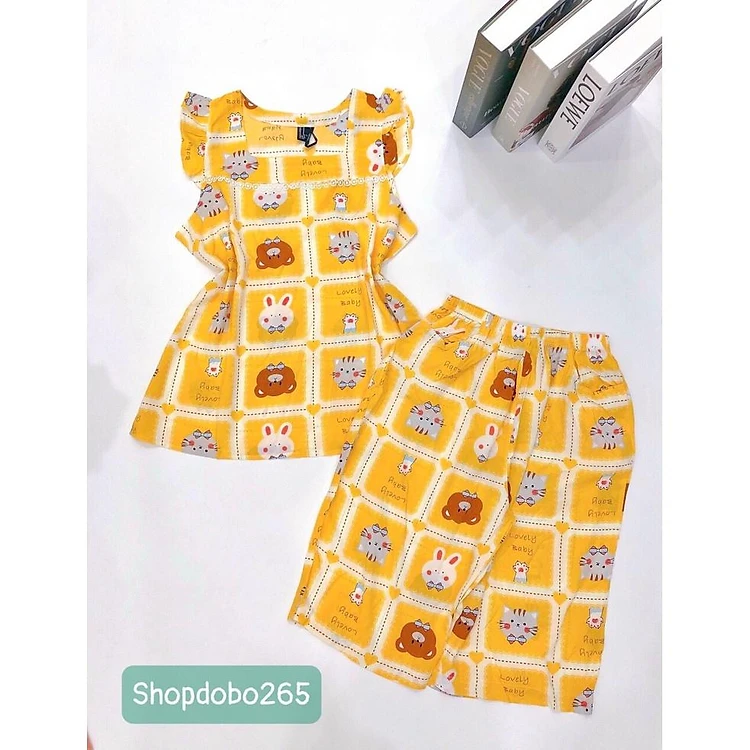 Đồ bộ nữ, đồ ngủ mặc nhà lửng cổ vuông phối ren F21 tay cánh tiên vải lanh BL161 họa tiết dễ thương size 45-70kg.