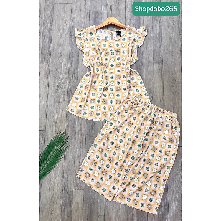 Đồ bộ nữ, đồ ngủ mặc nhà lửng tay cánh tiên vải lanh mềm ,mát BL 183 họa tiết dễ thương size 45-70kg.