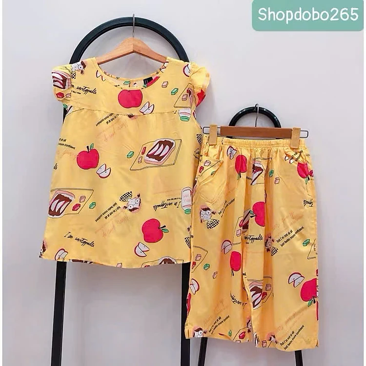 Đồ bộ nữ,đồ ngủ mặc nhà lửng tay cánh tiên vải lanh (tole) mềm, mát BL 164 họa tiết dễ thương size 45-70kg.