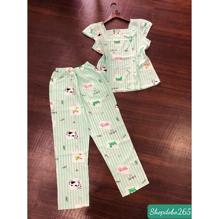 Đồ bộ nữ,đồ ngủ mặc nhà vải lụa quần dài BD 111 họa tiết dễ thương size 47-62kg.