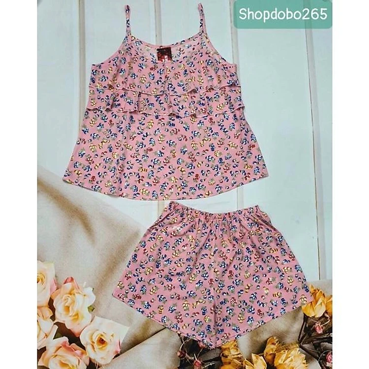 Đồ bộ nữ đùi mặc nhà ha dây tầng vải lanh BN 135 hoạ tiết dễ thương size 45-70kg.