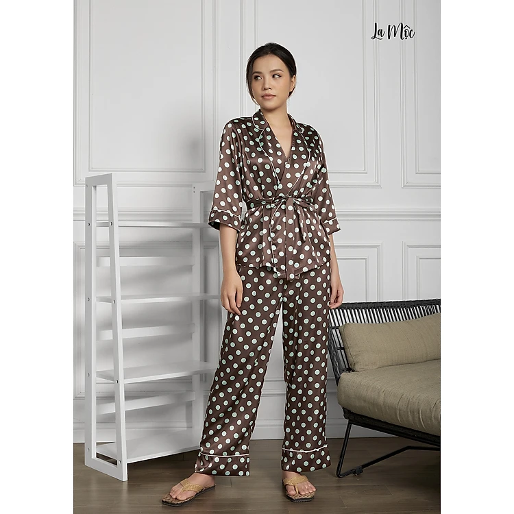 Đồ Bộ Nữ Mặc Nhà Pijama Dài Lụa Hàn Thắt Eo Maxivic, La Mộc - MM112114
