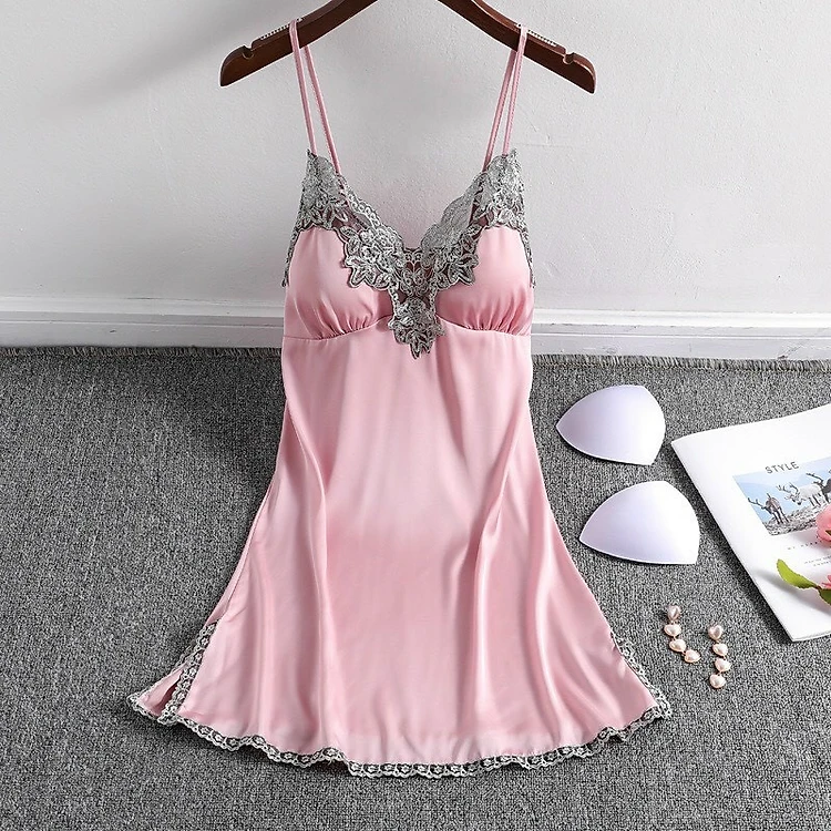 Váy ngủ lụa quảng châu cao cấp freesize 40-60kg (có mút ngực)