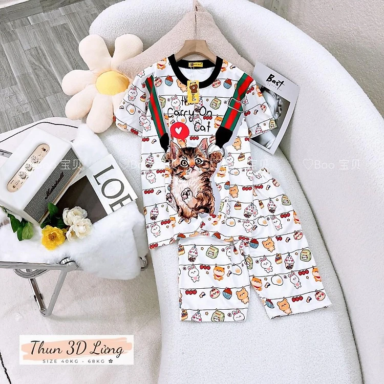 Đồ Bộ Pijama Thun 3D Lửng Freesize 40-68kg