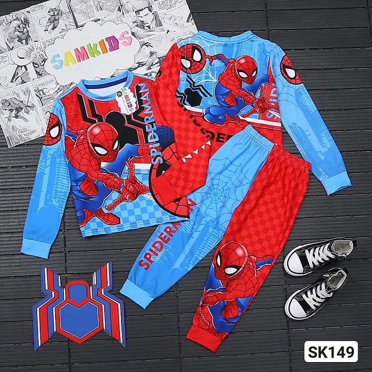 Đồ bộ tay dài bé trai siêu nhân từ 10-40kg- chất thun lạnh áo tay dài quần dài