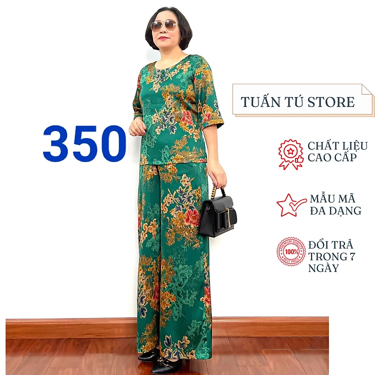 Đồ Bộ Trung Niên Cho Mẹ Sang Trọng Chất Liệu Lụa Satin Cao Cấp Mềm Mượt Họa Tiết Tinh Xảo - Tuấn Tú Store 68