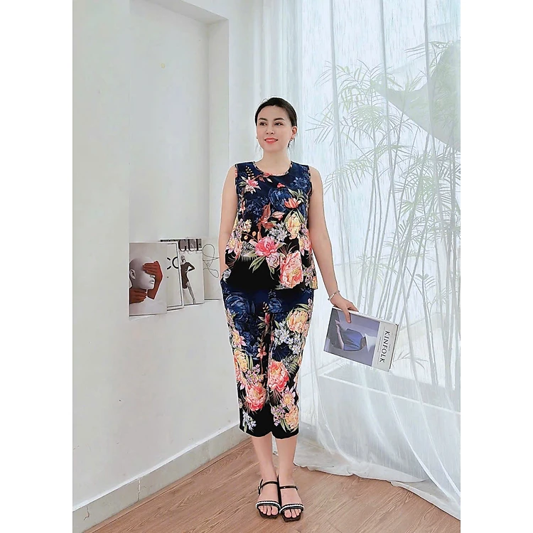 Đồ Bộ Trung Niên Cho Mẹ Quần Lửng Chất Vải Lụa Satin Bộ Đồ Ngủ Lửng Dành Cho Mẹ Độ Tuổi Trung Niên