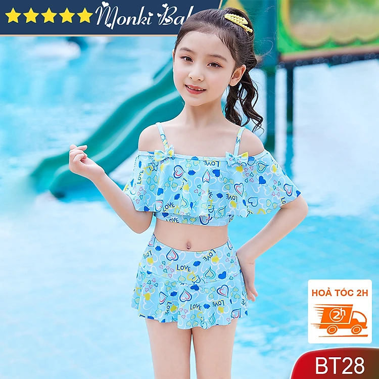 Đồ bơi 2 mảnh bé gái loại đẹp, bộ bikini cao cấp cho trẻ em nữ dễ thương, áo tắm công chúa mẫu mới, chất thun bơi lạnh Lycra đẹp | BT28