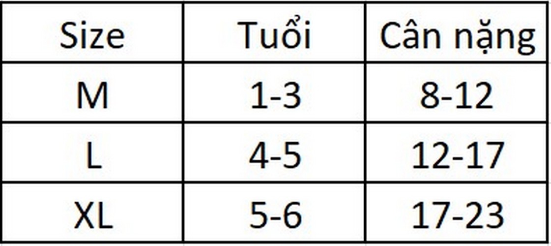 - Quý khách tham khảo bảng size để lựa size phù hợp với bé