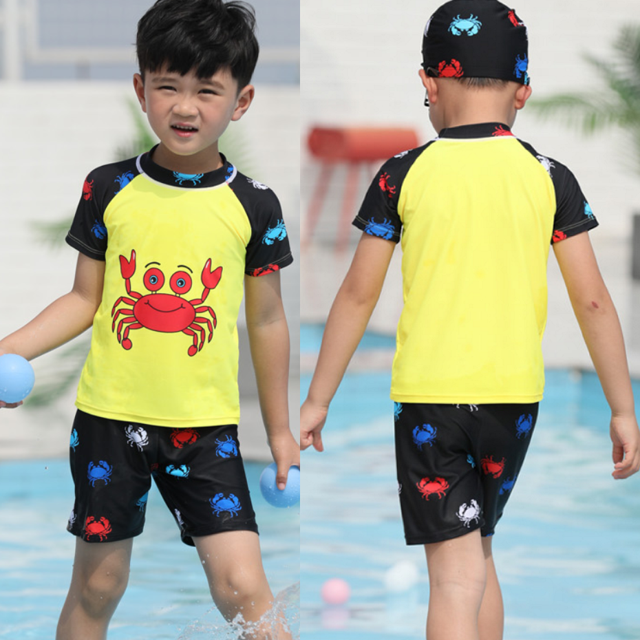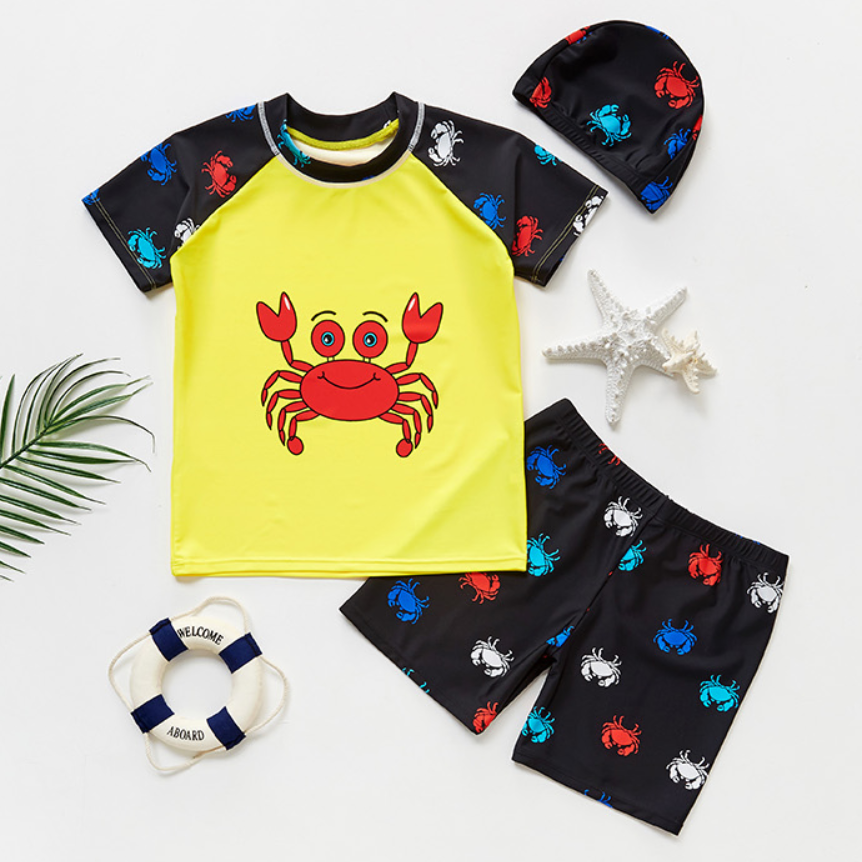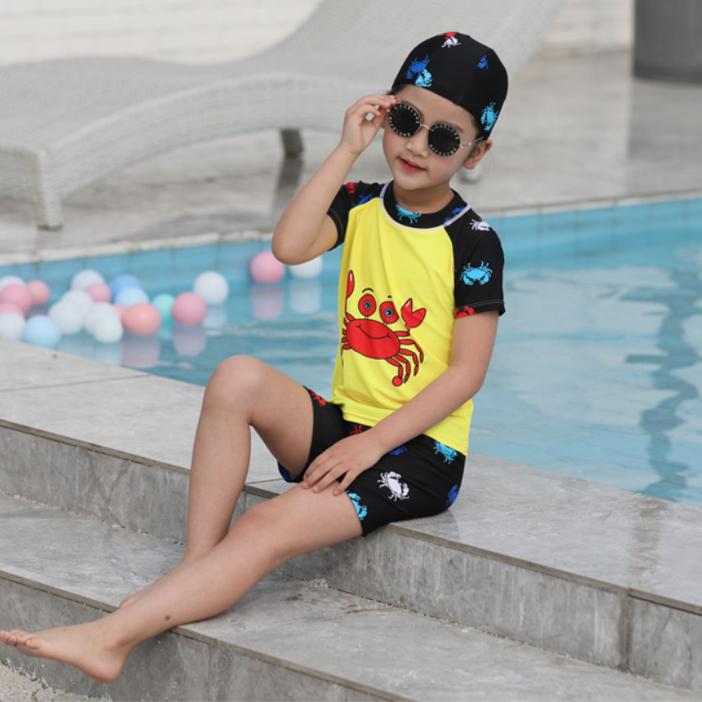 Cool Girl Swimwear With Cute Crab Pattern BBR620 MayHouse, Beautiful Durable Material: Cute with pattern, on bright yellow fabric background.