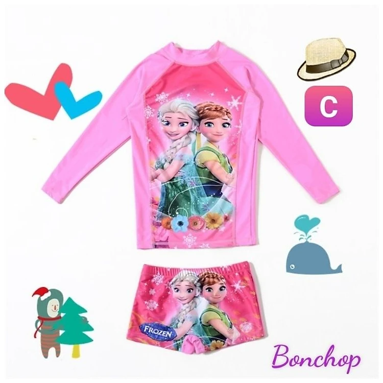 Đồ bơi bé gái tay dài hình elsa - công chúa từ 10-39kg- vải co giãn tốt - Kiến Lửa