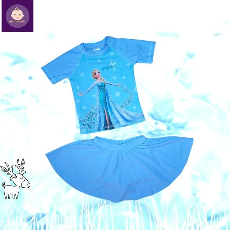 Đồ bơi bé gái tay dài hình Elsa - Pony từ 10-39kg -quần giả váy tạo kín đáo-HNStore115
