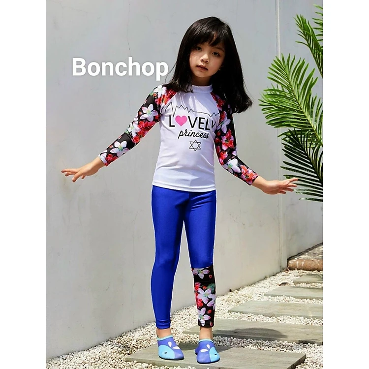 Đồ bơi cho bé gái áo dài tay quần dài từ 10-39kg - chất vải polyester cho bé chơi cả ngày