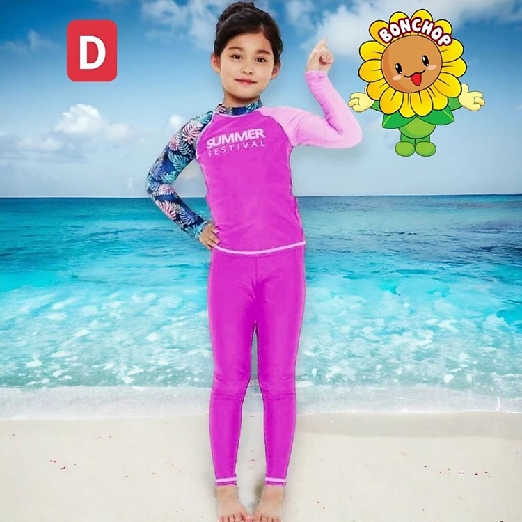 Đồ bơi cho bé gái dài tay từ 10-39kg - đồ bơi trẻ em chất liệu vải polyester tay áo in hoa