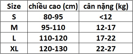 Chọn size: Quý khách tham khảo bảng size để lựa chọn cho phù hợp. Nếu mập hơn so với cùng chiều, quý khách phải tăng size để vừa với mình. Quý khách cũng có thể tham khảo theo size quần áo mặc hàng ngày. Lưu ý bảng size chỉ là tham khảo vì phụ thuộc vào chiều cao cơ thể cũng như thể trạng béo, gầy săn chắc của từng người.