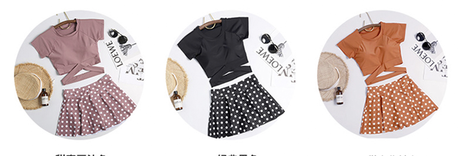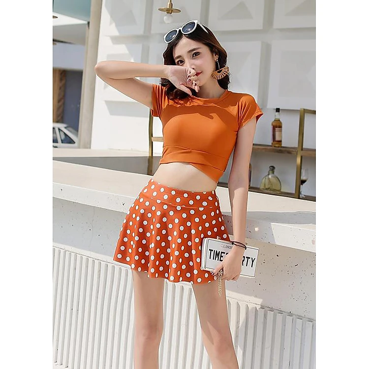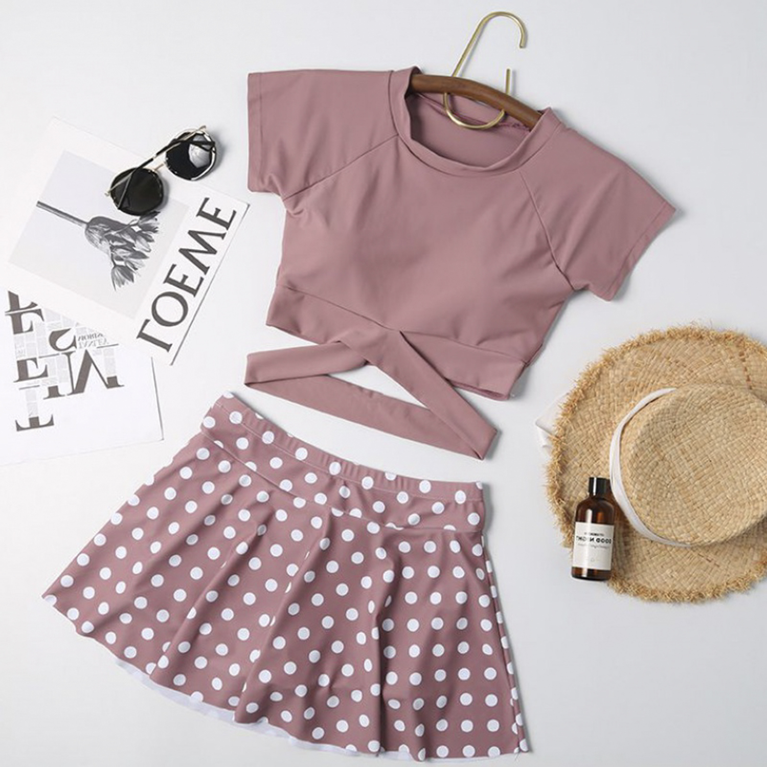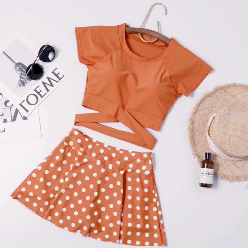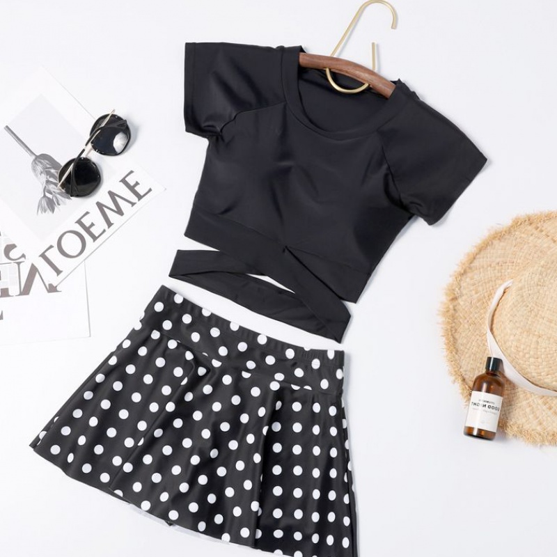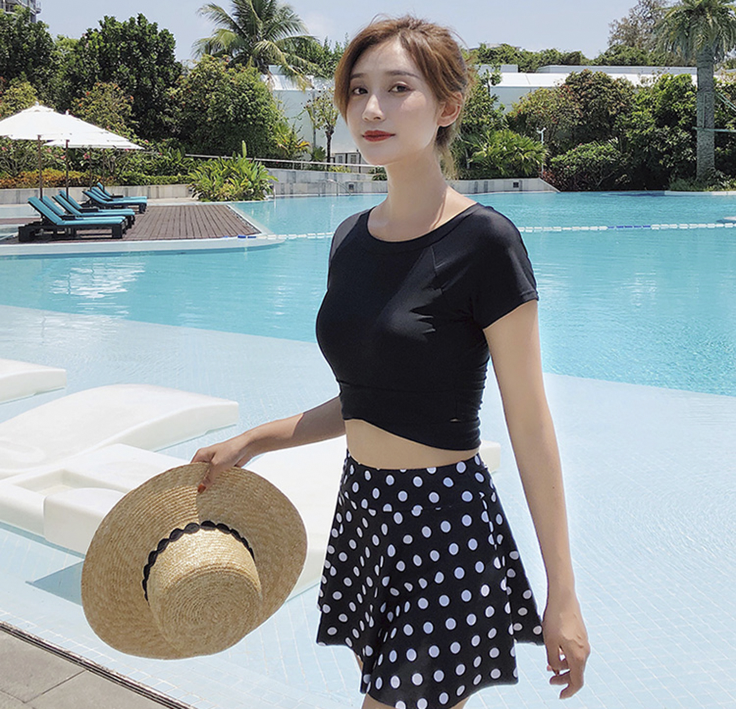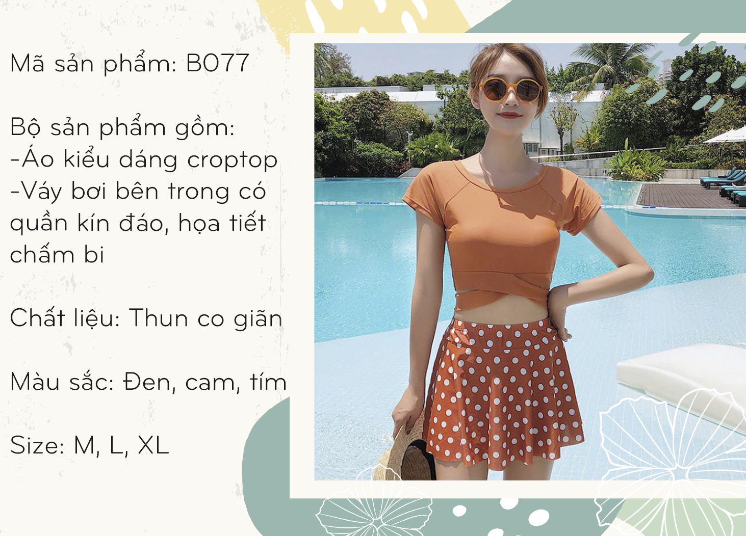 Đồ Bơi Nữ Đồ Bơi 2 Mảnh Áo Bơi Kiểu Dáng Croptop Váy Bơi Kết Hợp Quần Kín Đáo Họa Tiết Chấm Bi B077