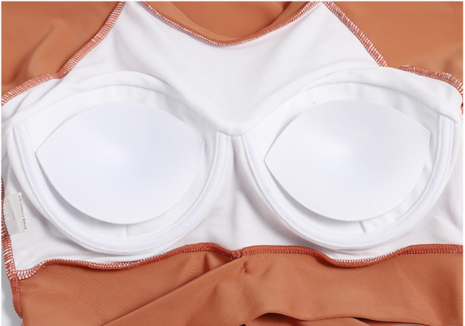 bên trong áo bơi có gọng và đệm vừa, ôm trọn và nâng đỡ vòng một