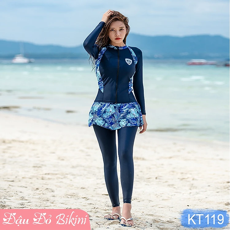 Đồ Bơi Đôi Big Size Dài Tay & Quần Dài Chống Nắng 3-4 chi tiết, bộ bơi size đại có áo khóa kéo dễ mặc, cỡ lớn đến 125kg, thun lạnh Lycra dày mịn mát | BN119 & KT119