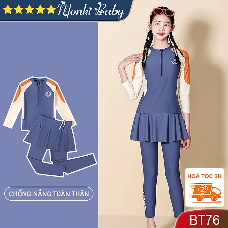 Đồ bơi kín chống nắng toàn thân cho bé gái tuổi teen, đủ size cỡ vừa & lớn, chất đẹp dày mịn mát co giãn cao, thiết kế thời trang, phù hợp với tuổi học sinh trung học | BT76