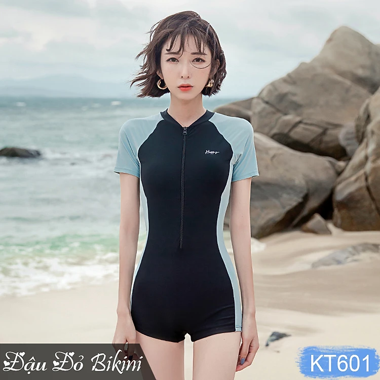Đồ bơi nữ liền thân quần short áo cộc tay & dài tay, có kèm chân váy lẻ, áo sẵn đệm mút, dáng đùi trẻ trung khoẻ đẹp, giấu bụng tốt, có size to cho nữ đến 68kg | KT601