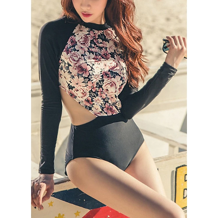 Đồ Bơi Tay Dài Nữ Một Mảnh Hoa Khóa Lưng
