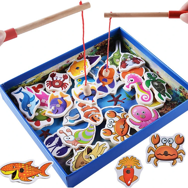 Đồ chơi câu cá nam châm gỗ 32 con chi tiết cho bé