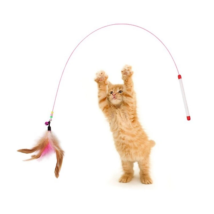 Đồ chơi cần câu mèo dây thép, đỉnh đầu được gắn lông