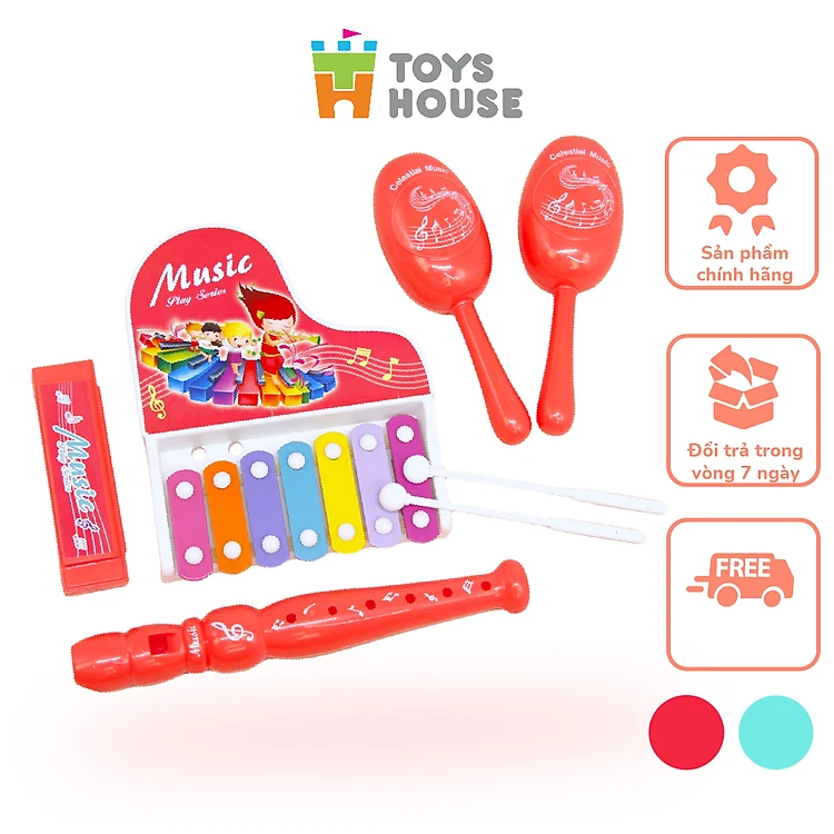 Đồ chơi đàn gõ Xylophone kèm sáo, lục lạc, kèn harmonica - Đồ chơi âm nhạc cho bé ToyHouse 682-9