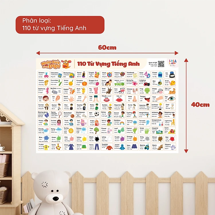 Đồ Chơi Giáo Dục - Poster Dán Tường (Không Keo Dính) Song Ngữ Anh Việt - Bảng Chữ Cái - Chữ Số - Cửu Chương - Động Vật - Lalala baby